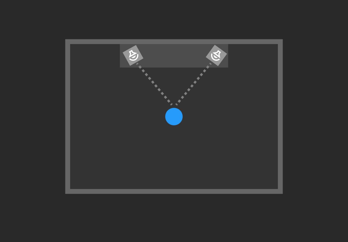 Sit in your listening chair and position the speakers so that you form an equilateral triangle with them — equal distance between each speaker and yourself. Aim to place your listening position about 40% of the way back from the front wall. Keep the setup as symmetrical as possible, and angle the speakers so the tweeters are aimed directly at your ears for the most accurate sound.
